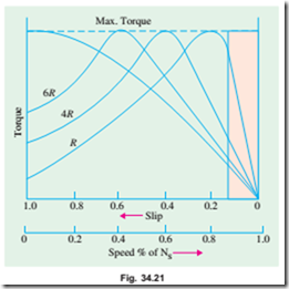 A family of torque/slip curves is shown in Fig. 34.21 for a range of s = 0 to s = 1 with R2 as the parameter. We have seen above in Art.